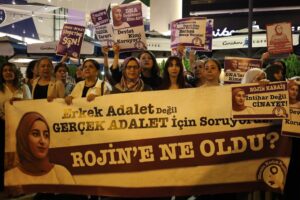 Bileşeni olduğumuz Mersin Kadın Platformu’nun, 27 Eylül 2024’te kaybolduktan 18 gün sonra Van Gölü kıyısında cansız bedeni bulunan 21 yaşındaki üniversite öğrencisi Rojin Kabaiş için Forum AVM önünde düzenlediği basın açıklamasına katıldık.
