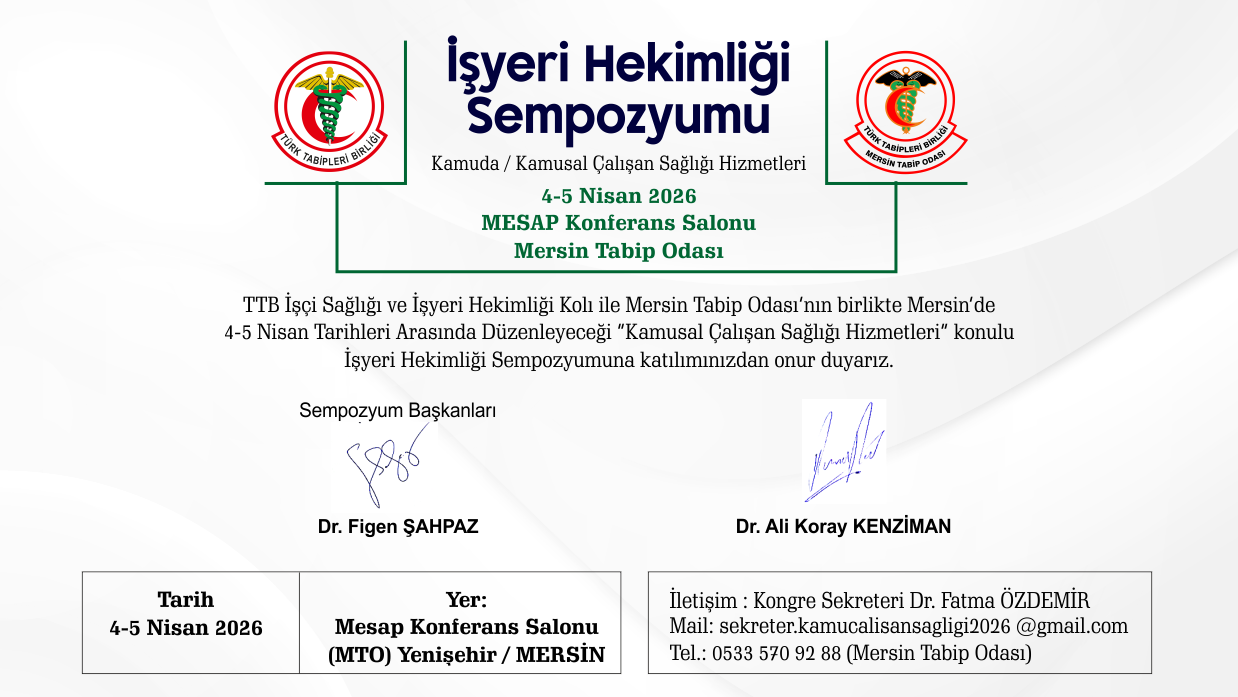 sekreter.kamucalisansagligi2026@gmail.com | 0533 570 92 88 (Mersin Tabip Odası) |