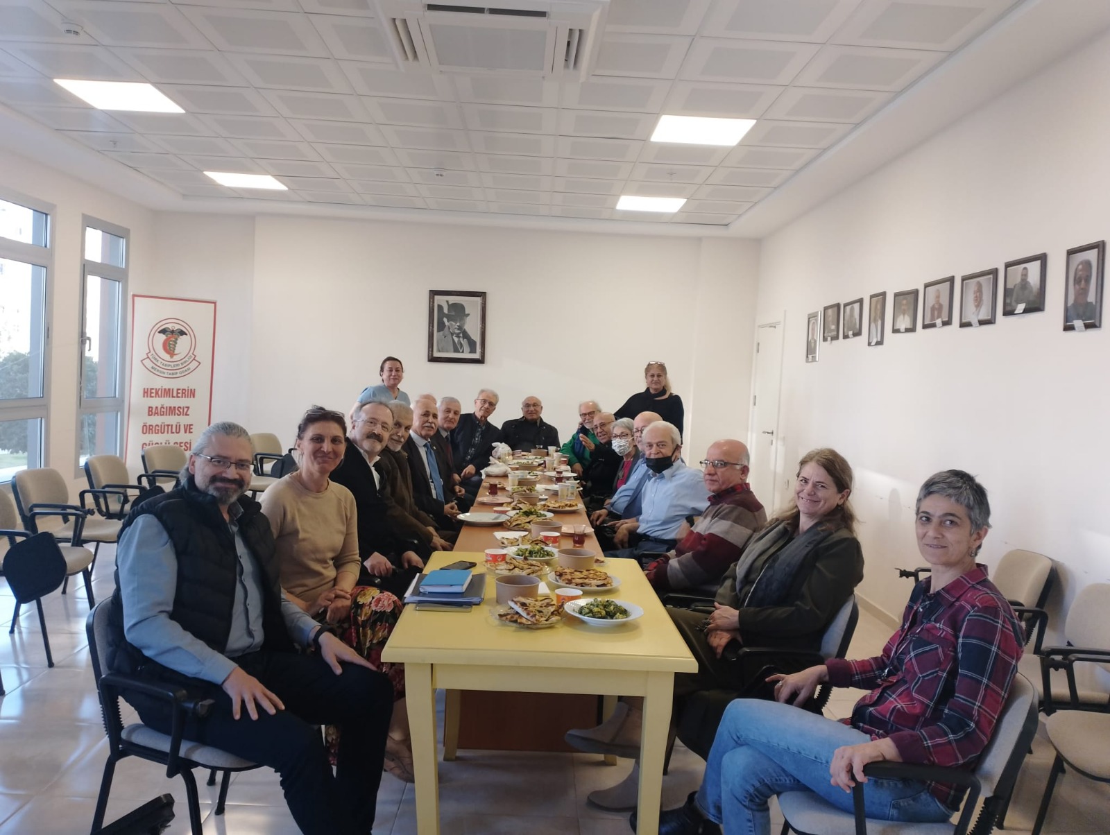 14 Mart Tıp Haftası etkinlikleri kapsamında geleneksel emektar hekimlerimizle buluşma etkinliği 12 Mart 2022 Salı günü Odamızda yapıldı. Emektar hekimlerimizden Dr. Mehmet İnan, Dr. Orhan Önal, Dr. Hüseyin Çamak, Dr. Yılmaz Aksoy, Dr. Zihni Erdal Hatungil, Dr. Fatma Rezan Hatungil, Dr. Adnan Akıncı, Dr. Orhan Tuğrul Ersöz, Dr. Bekir Özçivit, Dr. Ahmet Meram, Dr. Tuncay Demir, Dr. Ömer Fıratoğlu, Dr. Münevver Korkmaz, Dr. Bakiye Bakır, Dr. Selahattin Palamut, Dr. Ercan Kocamaz, Dr. Tayyar Gürbüz, Dr. Fikret Hisarlıgil, Dr. Melahat Aksoy, Dr. Ayşe Vural, Dr. Ayşe Birsen Kacı, Dr. Ahmet Kacı, Dr. Kenan Dinçer, Dr. Nuri Yüksel, Dr. Ful Uğurhan, Dr. Cemil Galioğlu, Dr. Mehmet Antmen Yönetim Kurulu üyelerimiz ve aileleri katıldılar. Bu yılki emektar hekim buluşmasına katılan bütün meslektaşlarımıza teşekkür eder, sağlıklı yıllar dileriz.